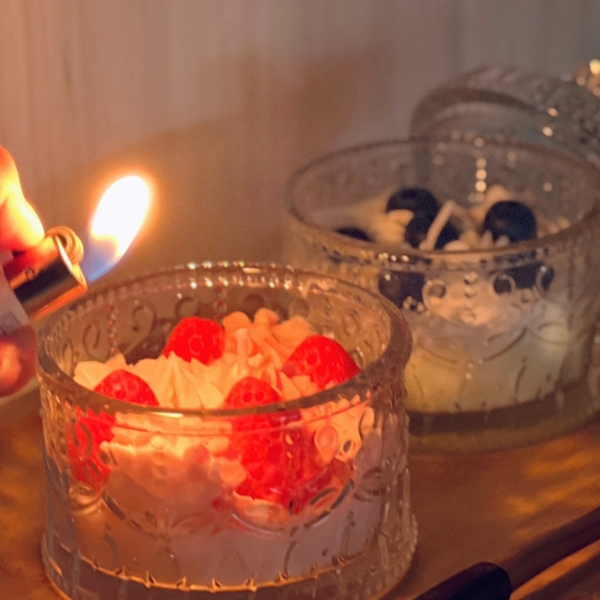 甜點香氛蠟燭造型可愛,裡面的蠟做得像奶油一樣很逼真,還有附蓋子可以防塵,蠟燒完後內部擦乾淨還可以當收納盒,真是一物兩用