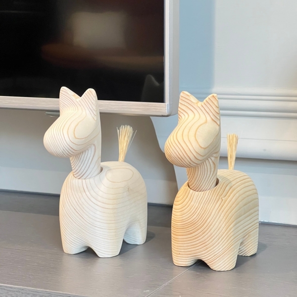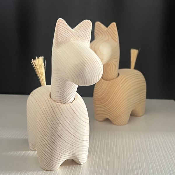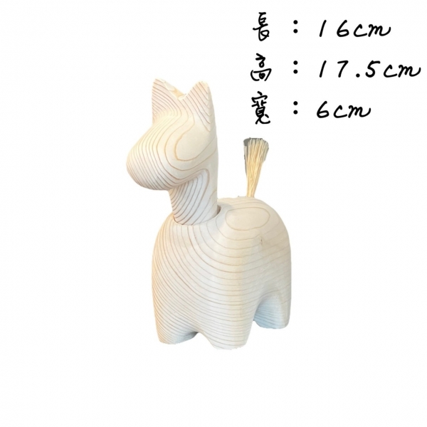 他沒上護木油跟漆,沒上就是一隻白白的小馬,上了就是小黃馬,如圖一右邊