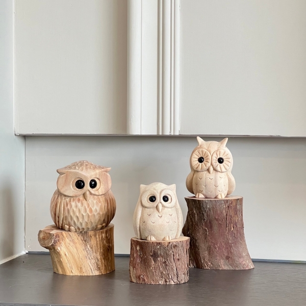 此貓頭鷹是無上護木油跟漆的,上了之後會稍微蓋掉它的香氣,顏色也會深一點