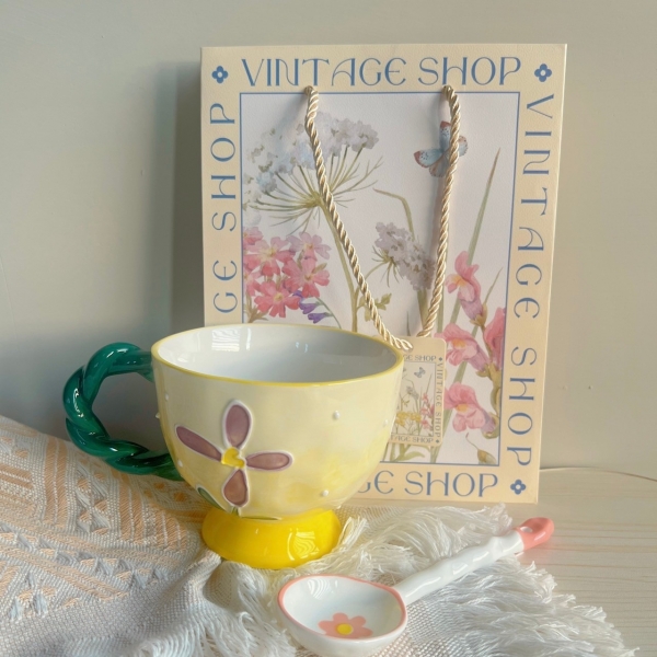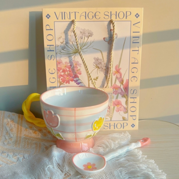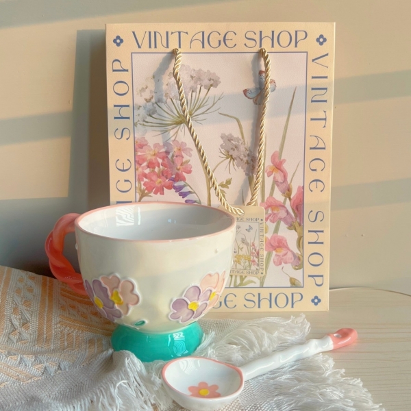 這個馬克杯有400ml的容量,每一個杯子都很可愛很有少女心,有附贈一個漂亮的紙袋,所以送人自用都很不錯